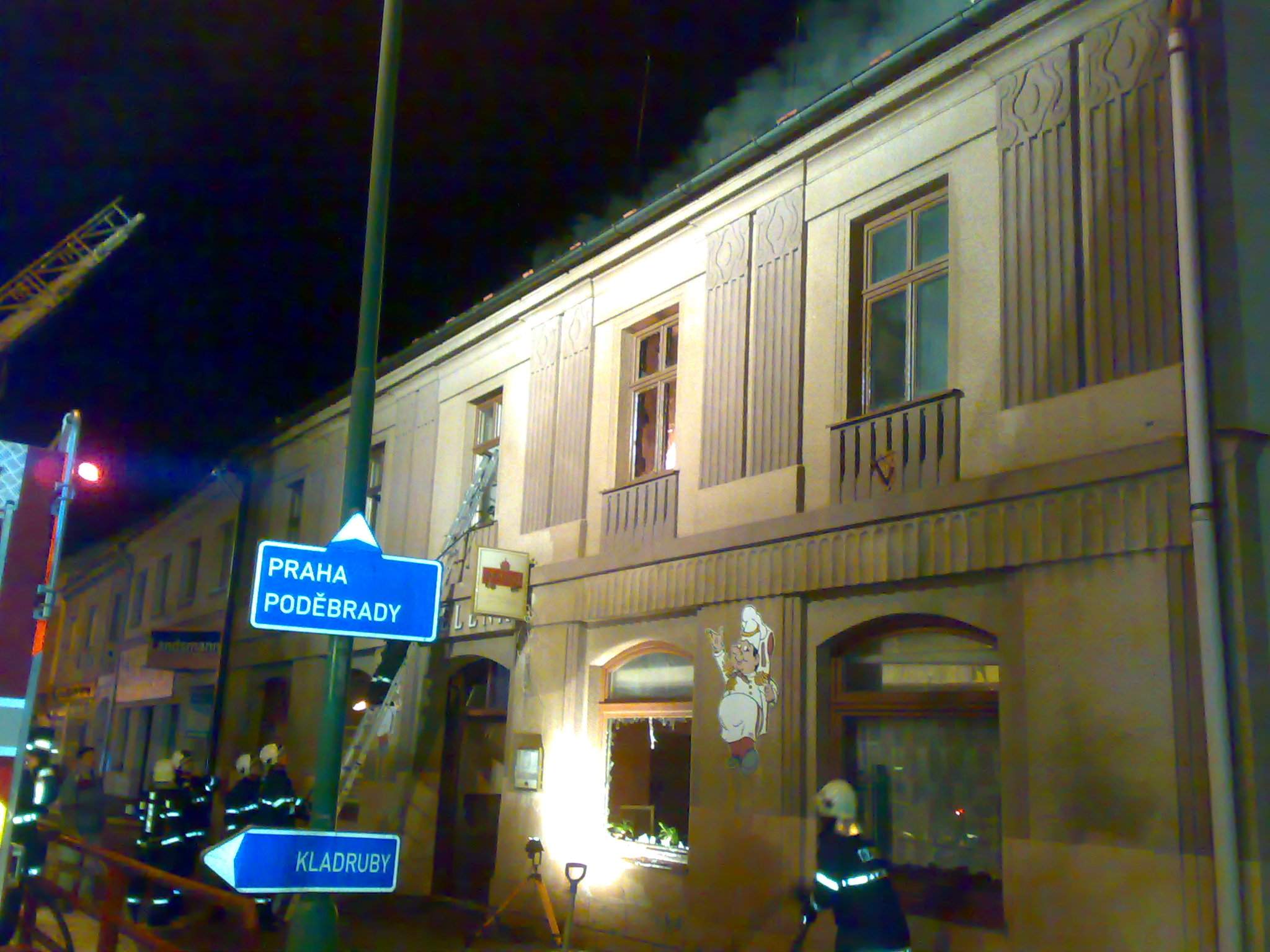 Fotky z požáru restaurace U Jelena, Chlumec nad Cidlinou, 1.1.2011