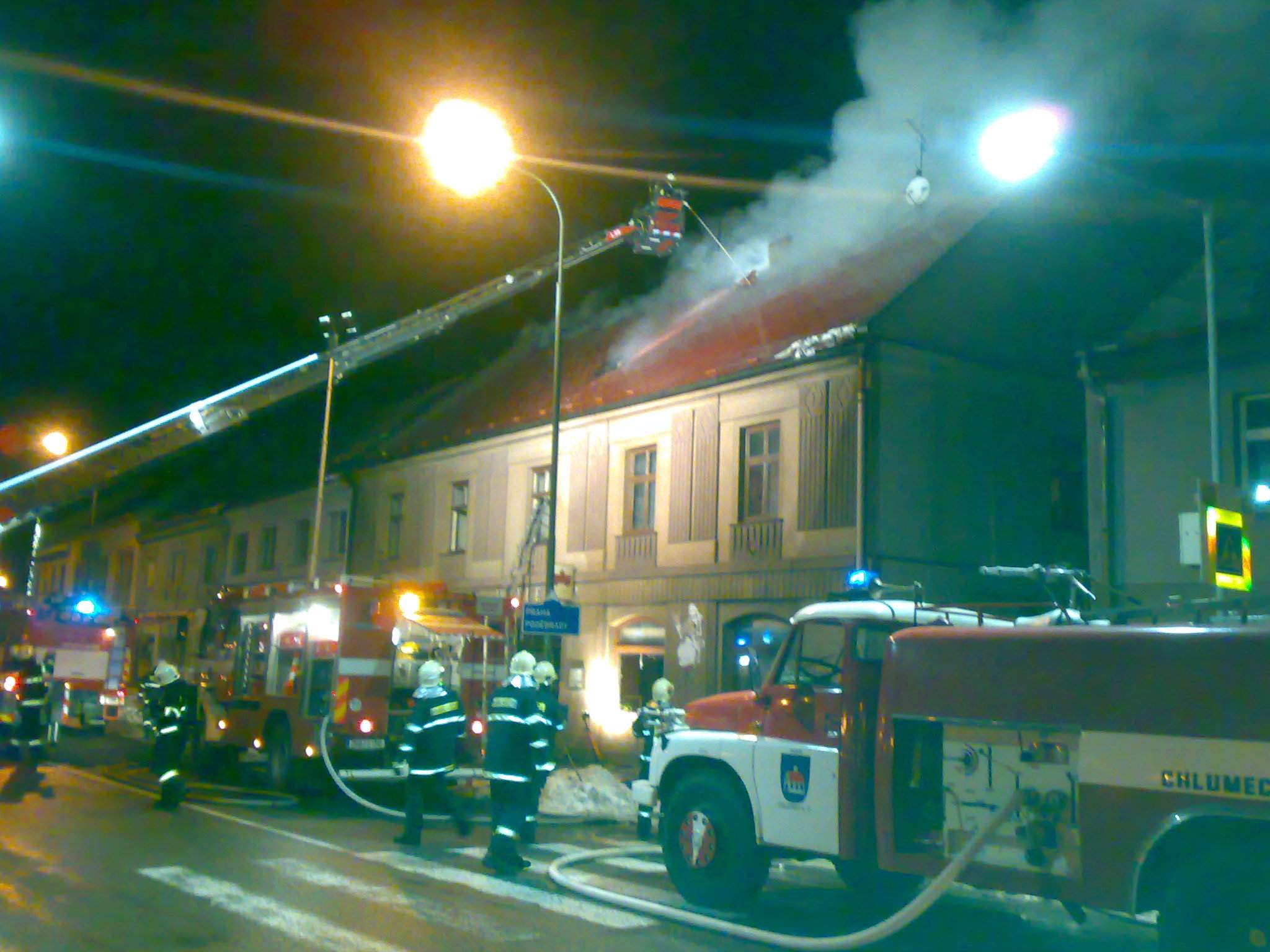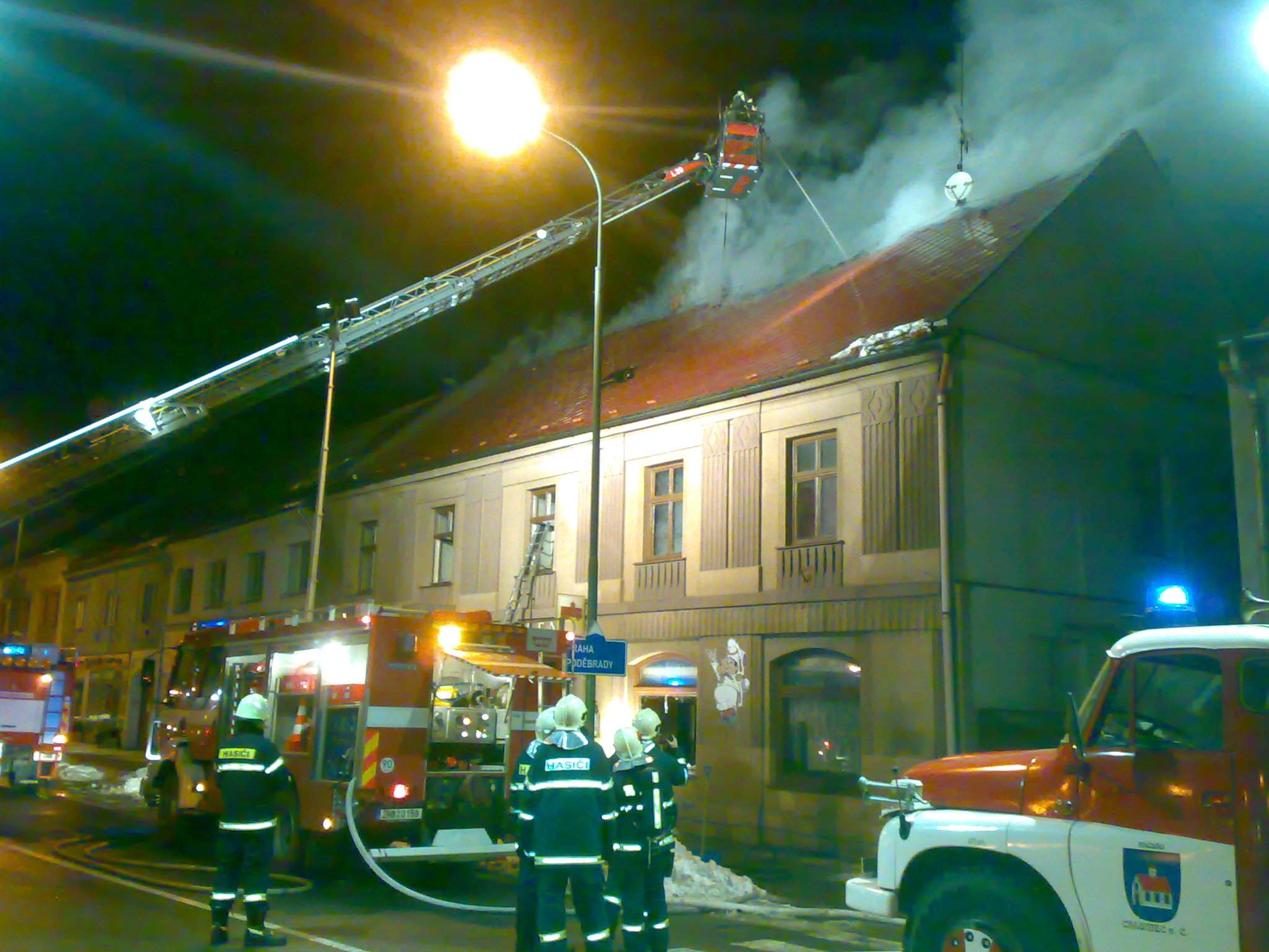 Fotky z požáru restaurace U Jelena, Chlumec nad Cidlinou, 1.1.2011